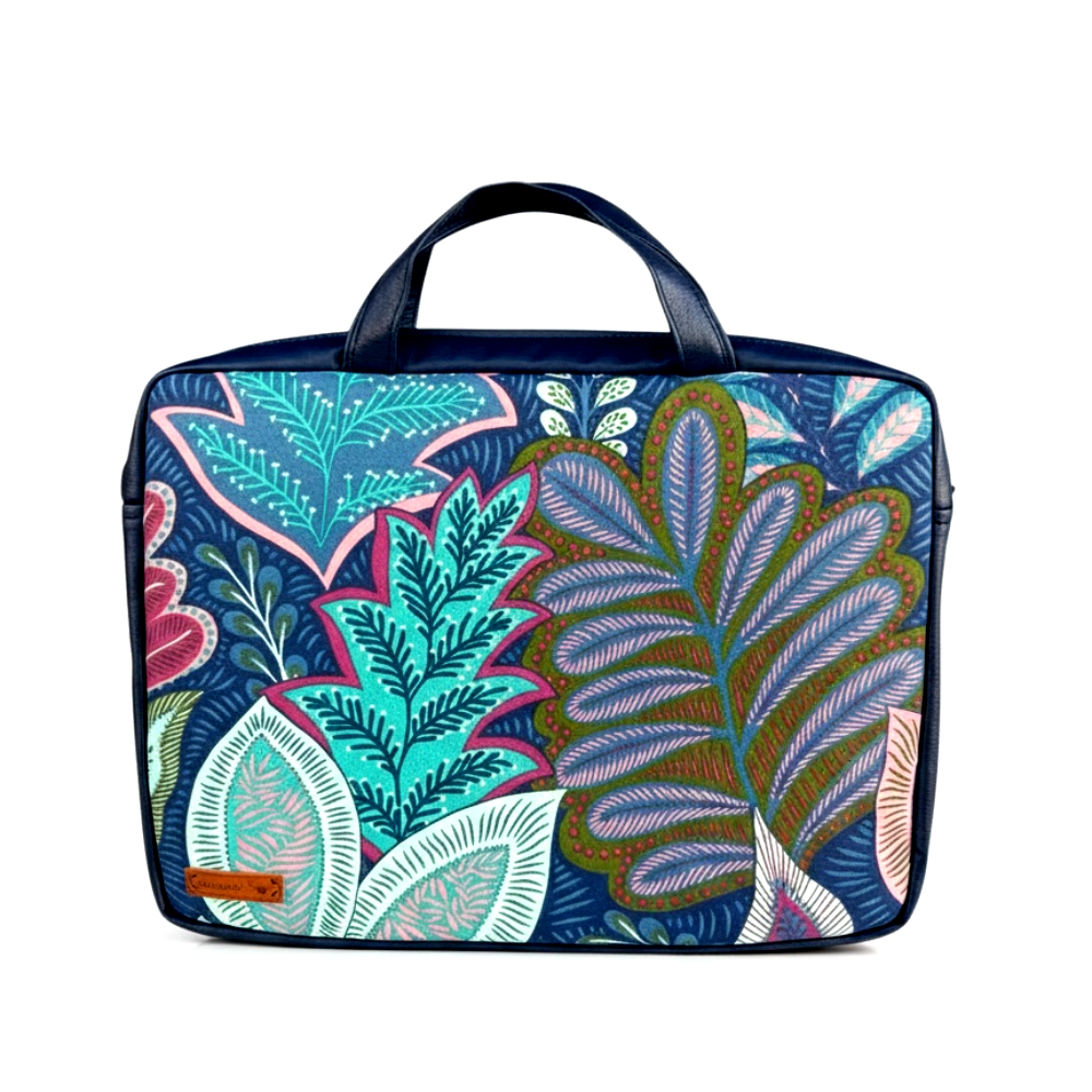 Sötétkék bőrrel kombinált laptop táska, eleje különleges mintás textillel készült. A mérete 38×28 cm, vastagsága 4cm. Ennél kisebb laptop fér bele kényelmesen. Belsejébe mintás vásznat tettem és van belül egy zsebe is. A táska alaposan kivan merevítve, vastag szivacsrétege jól megvédi a laptopunkat. A táska háta, füle és oldala textilbőrből készült. Vállpántja leszedhető. Belül van egy zsebe is, ahová kényelmesen elfér a gép töltője, és egyéb fontos dolgunk. Amennyiben más mintával, más színű bőrrel vagy más méretben szeretnéd a táskát, válaszd a boltomban lévő „Laptop táska tetszőleges mintával” termékemet! Köszönöm szépen!